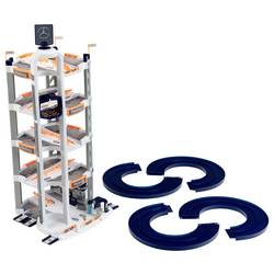 - Garáž parkovišť s dvojitou odjezdovou rampou pro razantní závody dvou závodních aut splňuje sny malých autodráhů