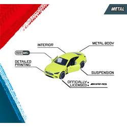 Díky volnoběhu a odpružení zvládnou autíčka o délce 7,5 cm hebké každou zatáčku a jsou vybavena výklopnými díly. Model auta na kov, který vyniká v každé sbírce a autogaráží: Tento řetězec řady 5 Majorette ukazuje, jak všestranný může svět Mercedes-AMG!
