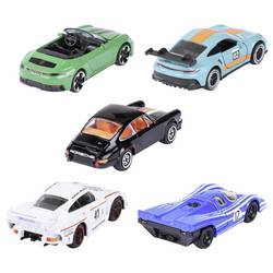 Auto Majorette Porsche (5 auta) - 5 modelů aut z kovu s volnoběhem a otevíravými díly, včetně 2 exkluzivních modelů, hraček pro sběratele a děti od 3 let, každý 7,5 cm