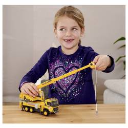 Pomocí manuálního lanového navijáku a háku umožňuje dětem od 3 let přepravovat náklad z jednoho místa na druhé: 3-dílné teleskopické rameno má délku až 35 cm a flexibilní pohyb ramene. Aby se při nakládání nepokazilo, 4 podpěr drží velké stavební vozidlo bezpečně na místě. Těžko lze vysunout podpěry, přehánět dětské jeřáby na další místo použití - ideální pro všechny malé stavební dělníky, kteří chtějí zvednout každou překážku!