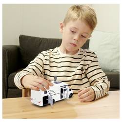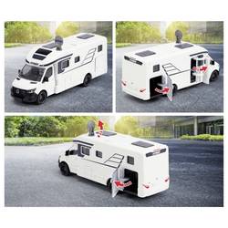 Pravé přední dveře a dvě střechy - ideální pro nakládání a přehrávání kreativní kempingové dobrodružství. Pohyblivá satelitní mísa lze otáčet i vsunout. Gumové profilované pneumatiky, volnoběh a stabilní kovové díly zajišťují autentický pocit z jízdy a dlouhou životnost, i na cestách při kempování nebo v klučení. Ideální dárek pro start na dovolenou!