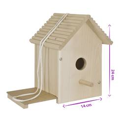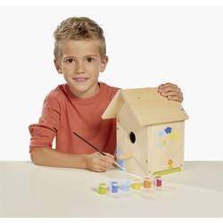 Tento roztomilý malý ptačí budka s rozměry 14 x 14 x 24 cm upoutá pozornost, ale ještě krásnější je, když je dům ošité a ozdoben. V sadě jsou jednotlivé díly ptačí budky a k tomu vhodné šrouby. Ptačí budka může být zavěšena pomocí dodaného provázku na stromek nebo upevněna na zadní straně domu pomocí integrovaného zařízení. V sadě je také štětec a 6 barevně laděných barev pro malování domu. Je možné ji zcela vymalovat, plošně, se vzorkem, body, čárkami, Nebo s textem. Dům je vyroben z kvalitního lipového dřeva a je vhodný pro děti od 6 let.