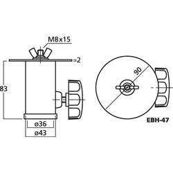Vhodný pro stativy se standardním průměrem (Ø 35 mm) v černém lakovaném ocelovém provedení M8x15 mm svorník se závitem s křídlovou maticí maximální zatížitelnost 7,5 kg