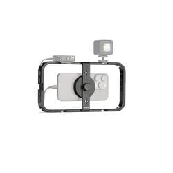 Je mnohostranně využitelný, profesionální Phone s magnetickým držákem pro pohodlné upevnění MagSafe® iPhones® a smartphonů s kompatibilním pouzdrem MagSafe®. Cage má uprostřed držák s ultra silnými magnety, které spolehlivě a bezpečně drží telefon i při intenzivním používání. Kolem rámu je umístěno více než 30 závitových přípojek pro připevnění stativů, rukojetí, SSD a jiného příslušenství, včetně čtrnácti normovaných závitů 1/4“, sedmnácti závitu ARRI 1/4“ a dvou závitů 3/8“, které slouží k připevnění Phone na stativ mikrofonu nebo studiové rameno.