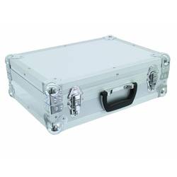 Profesionální přepravní kufřík s hliníkovým vzhledem · Molitanem polstrovaný vnitřek (černá) · Víko polstrované pěnou (nelze odejmout) · Pěnová vložka se hodí pro každou formu přístroje · Kvalitní provedení ze 7 mm silného vícevrstvého lepeného dřeva, laminovaného v provedení hliníkové barvy · Hliníkový rám (22 mm) se zaoblenými rohy · Trojramenný nástavec, středně velké zaoblené ocelové rohy · 2x vysoce kvalitní západkový zámek s kroužky pro uzavírání · Odolná sklopná rukojeť