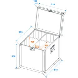 Praktický transportní kufr pro reflektory PAR-64 · Vnitřní prostor rozdělen do přihrádek pro čtyři reflektory PAR-64 Short nebo Long · Přepážky jsou vyjímatelné, umožňují univerzální použití · Pro přepravu krátkých reflektorů s namontovanými háky · Kvalitní provedení ze 7 mm silného, vícevrstvého lepeného dřeva, tmavě hnědě laminované · Hliníkový rám (30 mm) se zaoblenými rohy · Vnitřní prostor s pěnovým polstrováním · Trojramenné, středně velké zakulacené ocelové rohy · 2x pevně nastavitelný pant · 1x motýlkový zámek · 2x sklopná rukojeť