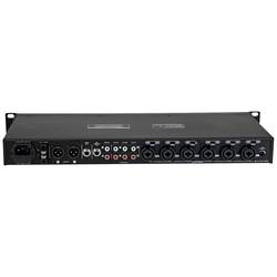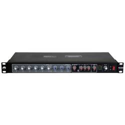 - 6 mono vstupní kanály mikrofon/Line (kombinovaná zásuvka), lze přepínat3 stereo Line vstupní kanály (cinch)Fantomové napájení, které lze připojit pro každý vstup pro mikrofonVšechny vstupní kanály s oddělenou regulací hlasitosti a LED kontrolkou signáluRegulovatelná funkce priority pro kanál 1Symetrické stereo XLR výstupy a zdířky cinchRegulovatelný monitor výstup (jack) pro poslech mikrofonních signálůRegulovatelný výstup mono Line (jack)Master regulátor, 4-místný stereo LED ukazatel úrovně a 3-pásmový ekvalizérDalší svorky pro napájení 24 V.(19") montáž do racku 48,3 cm, 1 HE