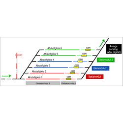 Základní modul monitoruje a řídí první dvě odstavné koleje. Přídavný kolejový modul monitoruje a řídí 2 další odstavné koleje (lze připojit max. 15 modulů koleje).