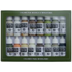 Sada 16 barevných sad od modelu Color pro malování modelů a mini přístrojů. Každá z těchto sad obsahuje výběr speciálních barev pro malování vozidel, postav atd. obsahuje 16 lahví po 17 ml. (S pipety) a barevnou kartou.