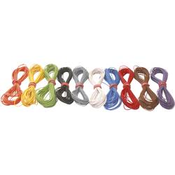 12 tenkých a velmi flexibilních licen v 10 barvách oranžová, žlutá, zelená, černá, bílá, šedá, modrá, červená, hnědá a fialová. Ideal pro připojení lokomotivy a funkční dekodéru · dodává se v 5 m svitcích.