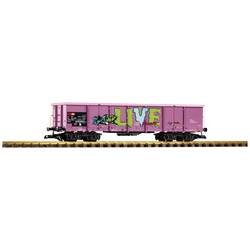 Otevřený nákladní vůz typu Eaos SBB v epoše VI. Strany vagonu jsou potištěny různými dekoracemi.