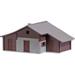 Stavebnice pro větší chatu s vestavěným kamenem. Modulová konstrukce kombinující stěny z přírodního kamene. Okna a dveře z pravého dřeva, všechny díly kompletně zkolené. S paticí osvětlení Busch 4280 nebo LED 5998.