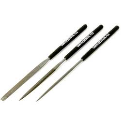Tato praktická sada pilníků obsahuje 3 dvojitě nařezaných pilníků s černými gumovými rukojeťmi, které zajišťují hladký povrch u modelů s plastovým měrkou, Mini 4WD modelů a dokonce i kovových povrchů. Soubory lze uložit do přiloženého vinylového obalu, aby byly chráněny před poškozením.