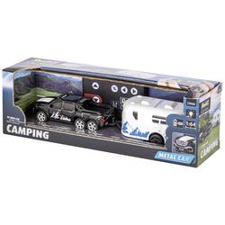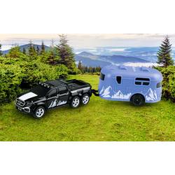 Malý 2-kanálový Pick-Up s odolnou kovovou karoserií a obytným přívěsem lze díky dálkovému ovládání s frekvencí 2.4 GHz a třem rychlostním stupňům velmi snadno řídit každým pokoji. Po pouze 40 minutách nabíjení je souprava 20 minut připravena k provozu. Součástí dodávky je akumulátor a USB nabíjecí kabel. Odnímatelný přívěs.