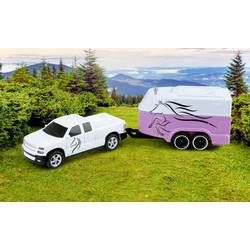 Malý 2-kanálový Pick-Up s odolnou kovovou karoserií a visačkou můžou díky dálkovému ovládání 2.4 GHz a třem rychlostním stupňům velmi snadno řídit každý pokoj. Po pouze 40 minutách nabíjení je souprava 20 minut připravena k provozu. Součástí dodávky je akumulátor a USB nabíjecí kabel. Přívěs s funkční klapkou.