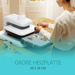 Velkorysá velikost: Velká topná deska 38 x 38 cm a velká výsuvná žehlící deska poskytují dostatek místa pro věci jako trička, tašky a potahy polštáře. Nebo můžete nažehlit víceméně projekty najednou.