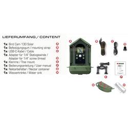 Kromě toho je na 130 základě přirozeného, příjemného tvaru a nenápadné zelené barvy na tarnosu u ptáků přijat jako spolehlivý rozprašovač potravy a jako vítaná vodní hladina. Díky závěsným zařízením na střeše lze svítidlo snadno připevnit např. na střechu a součástí dodávky je také nádoba pro kolimříše. Kamera Bird CAM 130 je solární odolná proti povětrnostním vlivům s ochranou IP65 a je vhodná pro venkovní použití. Lze ji velmi jednoduše připevnit na stromek, keře atd. - ideální pro ideal použití na zahradě. Všechny držáky jsou součástí dodávky.