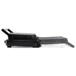 Plavecký kryt se automaticky přizpůsobí obsahu a zajišťuje optimální kontakt. Přístroj lze rozevřít o 180° a použít jako stolní gril. Teplotu lze individuálně regulovat. Kontrolky ukazují provozní stav „zapnuto/vypnuto“ a „připraveno“.