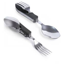 Sintron Gear: Velmi praktická multifunkční sada jídelních příborů s nožem, vidlicí, polévkovou lžící a otvírákem lahví pro kempování i venkovní použití. Příbory lze rozložit vyklopením vidlice a rozložit na 2 díly. Získáte vidlici na jedné straně a nůž (s otvírákem lahví) nebo lžíce na straně druhé. Díky rozměrům nezaskává příbor běžný příbor. K tomu je praktické, bezpečné, stabilní, snadno se čistí a v porovnání s jednocestnými příbory samozřejmě šetrný k životnímu prostředí.