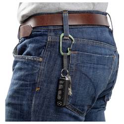 Hliníkový karainer v pestrobarevném provedení a kroužek na klíče jsou spojeny krátkým nylonovým páskem, který rozpojí klíče, ale přesto je spojí. Karabina má SlideLock mechanismus, který ji uzamkne, takže ji lze bezpečně upevnit na poutko na opasek, batoh nebo popruh na ruku.