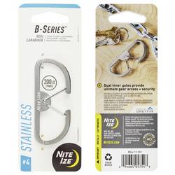 Duální Dual karabinka řady B přináší slovo „brilantní“ a má jedinečný design, který se skládá ze dvou vnitřních pružinových zámků. Jedinečná karabina ve tvaru B je vyrobena ze silné nerezové oceli a umožňuje bezpečné zavěšení předmětů s hmotností až 150 liber ve velikosti 3 a 200 liber ve velikosti 4. Přesná konstrukce silné vnitřní spony z nerezové oceli zajišťuje, že zařízení zůstane bezpečně zavěšeno, zatímco lze snadno uvolnit jednoduchým tlakem na spony.