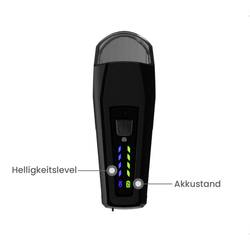 Nabíjecí 110 Lux přední světelný panel vč Nabíjecí zásuvka USB-C (až 110 luxů, možnost přepínání na 75 luxů/ 45 luxů/ 15 luxů / modulovací svorka) s nastavením šířky světelného senzoru, režimem senzoru, automatickým vypnutí a 4 LED pro stav baterie a 4 LED pro provozní stavy.
