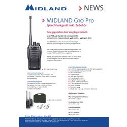 Radiostanice Midland G10 pro je velmi kvalitní PMR radiostanice za příznivou cenu. Přístroj si vás získá svojí jednoduchou ovladatelností a užitečnými doplňkovými funkcemi, jako je 16 předprogramovatelných kanálů, CTCSS a DCS rozpoznávacích tónů. Pomocí volitelného softwaru „PRG 10“ lze tuto vysílačku naprogramovat podle potřeb uživatele.