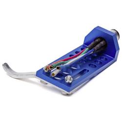 Držák přenosky v SME provedení, modře eloxovaný, CNC hliník, 13 g. Sada pozlacených OFC připojovacích kabelů + sada šroubů