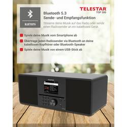 Telestar TOP 300 Schwarz 5700300 rádio CD, internetové, DAB+, FM, USB, Wi-Fi, internet, DAB+, CD, Bluetooth, AUX, vč. dálkového ovládání, černá