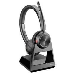 HP Poly Savi 7220 Office Headset otevřená (On Ear) DECT stereo černá Potlačení hluku headset, regulace hlasitosti, Vypnutí zvuku mikrofonu, vč. nabíjecí a