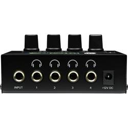 Ultra kompaktní sluchátkový zesilovač HM-4 4 má 1/4" stereo vstup a čtyři 1/4" výstupy pro sluchátka s individuálními regulátory hlasitosti. Ideální do studií nebo i domů, chcete-li poslouchat až 4 osoby společně.