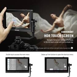 - 5,5" Full HD dotykový monitor; kompaktní, odolný a mobilní Full HD monitor; IPS dotykový displej; rozlišení: 1920 x 1080 pixelů; jas: 410 cd/m2; kontrastní poměr: 1000:1; zorný úhel: 160°; 4K HDMI vstup a výstup; podporované HDMI formáty: 4K UHD 3840x2160p (30/29,97/25/24/23,98 Hz); 5766x280p (480p/24); Waveform, Oscillogram, Vectorscope, Světlová histogram, Peak Focus, Zebra, Single Color, False Color a mnoho dalších; profesionální kalibrace Rec-69FARBUBEHM; funkce 3D LUT, HLG 2020, HLG 709 a HLG P3 předinstalované; slot pro SD karty k nabíjení vlastních 3D LUT tabulek a pro aktualizace firmwaru; 3,5 mm TRS výstup pro sluchátka; tři 1/4“ závity na stativ; otočné rameno se standardním stojanem pro kameru; napájení: výměnný akumulátor NP-F (je součástí dodávky); napájení alternativně přes USB-C (5 v) nebo 12 v DC napájecí zdroj (volitelný); rozměry: 141 x 94 x 24 mm; hmotnost: 256 g; vč. sluneční clony; vč. akumulátoru NP-F550 a nabíječky; vč. kabelu HDMI na mini HDMI a kabelu HDMI na micro HDMI; včetně utěrky