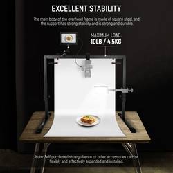Overhewer ST100 Overhead-kamera je praktickým a univerzálním řešením pro montáž kamer a světelných zdrojů. Umožňuje fotografovat a natáčovat videa, pořizovat kreativní snímky z jedinečné perspektivy, ať už pro fotografování výrobků, styling potravin nebo speciální video projekty. Držák je vyroben z oceli, was prozárukou bezpečné a stabilní montáže. Pomocí nastavitelného ramena lze snadno nastavit výšku a úhel kamery a dosáhnout tak požadované komfortní pozice. ST100 je kompatibilní s celou řadou kamer a lze jej snadno upevnit na stativ nebo jiné držáky. Tento držák kamery je ideálním doplňkem pro každé studiové vybavení a umožňuje uživatelům plně využít kreativitu při pořizování snímků a videí.