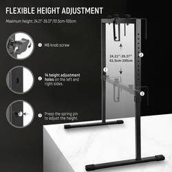 - Korička s Overhead; odolný čtyřhranný ocelový rám; příčná tyč s 12 upevňovacími body (M8); držák kamery s 1/4“ fixačním šroubem; šířka: 92,5 cm; výška: 62 - 100 cm, 14 stupňů; pohodlné nastavení výšky s aretací pomocí svorkového čepu; délka stojanu: 57 cm; nosnost: Max. 4,5 kg; hmotnost: 5,7 kg; vč. 2 šroubovatelných L držáků; vč. 2 svorek na pozadí