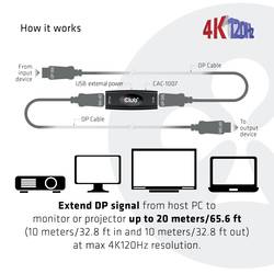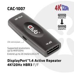 Club 3D CAC-1007 je repeater DisplayPort™/zesilovač signálu, který nabízí praktické řešení pro uživatele, kteří využívají DP™ signál z počítače Host k monitoru nebo projektoru až na vzdálenost 20 metrů (10 m IN a 1.4 10 m OUT). při rozlišení maximálně 4K120Hz pro kabely s průřezem 28 AWG nebo lepší.