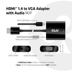 Adaptér Club 3D CAC-1302 je aktivní HDMI™ a 1.4 převodník VGA signálu. Umožňuje digitální HDMI ® signál na analogové VGA