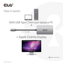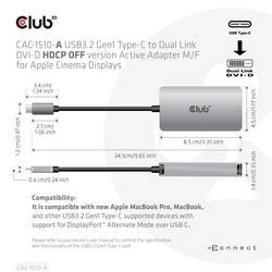 Club 3D CAC-1510-a je USB3.2 Gen1 C vstup na Dual Link Dual Link DVI-D nebo Single Link DVI adaptér jako Apple Cinema verzi HDCP OFF