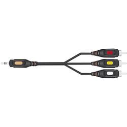 Kabel pro přenos audio a videosignálů. Kabel disponuje 4pólovou 3,5 mm jack zástrčkou a 3x cinch zástrčkou (žlutá/červená/bílá). Tento kabel můžete použít na přenos audio a videosignálů z přehrávače do televize.