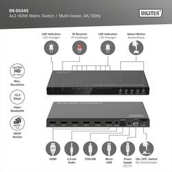 Digitus DS-55345 4 + 2 porty HDMI přepínač LED ukazatel, s dálkovým ovládáním, UHD, kovový ukazatel, lze spínat jednotlivě, se stavovými LED 3840 x 2160 Pixel