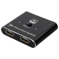 HDMI® rozdělovač je velmi praktickým nástrojem pro distribuci HDMI® signálu ze zdroje, jako např. streamovacího boxu, na více obrazovek nebo televizorů. Obzvláště v domácím kině je tato funkce užitečná, pokud se chcete prohlížet na televizi v každodenním životě a projektovat svůj oblíbený film na projektoru pro zvláštní konec filmu. Protože je tento HDMI® obousměrný, může pracovat v obou směrech. To znamená, že jej lze použít také jako přepínač HDMI® pro spínání dvou vstupů na jeden výstup. Můžete tak například připojit přehrávač Blu-ray a herní konzoli k televizoru. Tento HDMI® rozdělovač podporuje obrazové signály v 8K kvalitě. Protože není zapotřebí externí napájecí zdroj, můžete jej použít kdekoliv a nenápadně schovat. Pomocí spínače můžete signál zcela jednoduše přepínat.