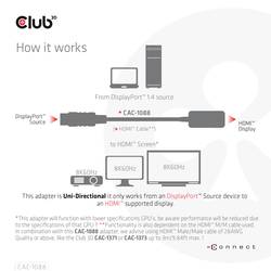 Club 3D CAC-1088 je perfektním řešením pro připojení na všechny HDMI™ 4K120Hz/8K60Hz displeje*. Pokud máte PC s podporou DisplayPort™ 1.4 nebo jiné zařízení, které postrádá novou specifikaci HDMI™ 4K120Hz/8K60Hz, club3D CAC-1088 je snadný způsob, jak vybavit své zařízení a připojit jej k vašemu novému televizoru*.