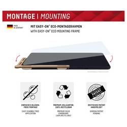 S pomocí EASY-ON Eco-montážní rámečku je montáž tabletu glass rychlá, snadná a přesná. Výsledek: Žádný jiný displej, žádné skryté otvory pro reproduktory nebo mikrofony a především žádná foukání pod ochranným sklem. Dobrý pro životní prostředí: ECO montážní rám se ze 100 % skládá z recyklovatelného prémiového kartonu a lze jej po použití bez obav recyklovat s papírem.