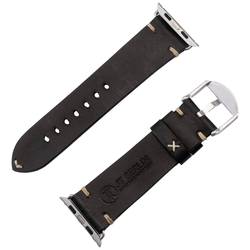 JT Berlin Watchband Alex II Vintage náramek 42 mm, 44 mm, 45 mm, 46 mm M černá, stříbrná Watch Series 1, Watch Series 2, Watch Series 3, Watch Series 4, Watch