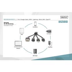Digitus pro mobilní telefon, Apple iPad/iPhone/iPod, notebook nabíjecí kabel [1x USB A - 3x USB] 0.15 m