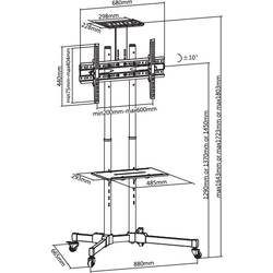 Díky nezávislému nastavení výšky lze vozík nastavit v rozmezí od 120 cm do 160 cm a libovolně jej tak přizpůsobit svým potřebám. Televizor lze naklopit o 10° nahoru a o 10° dolů.