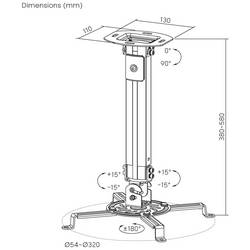 S nastavitelnou délkou od 380 do 580 mm nabízí tento držák další prostor pro různé výšky místnosti. Sklopná stropní deska je vhodná pro ploché i šikmé stropy.