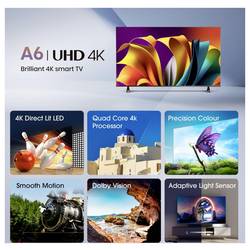 Hisense 65A6N LED TV, 164 cm 65 palec, E (A - G), DVB-T2, DVB-C, DVB-S2, UHD, Smart TV, WLAN, černá