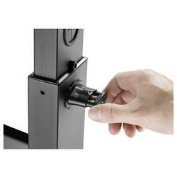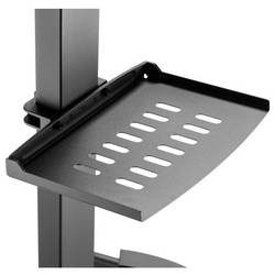 Pod hlavním držákem je odkládací plocha s výškou až 5 kg. Úložný prostor je vhodný pro set-top boxy, streamovací zařízení, přehrávače médií nebo další periferie, které jsou potřeba v blízkosti displeje. Integrované vedení kabelů uvnitř sloupku doplňuje koncept a umožňuje nenápadné pokládání kabelů. Výsledkem je obraz bez volné zavěšené kabelky, který se was odhaduje zejména v reprezentativních prostředích, jako jsou přijímací prostory, prostory na medainy nebo prodejní plochy.
