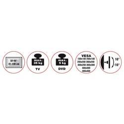 TV stojan 55 P-4040T je navržena jako promyšlená konstrukce pro obrazovky od 32" do 55". S nosností až 35 kg nabízí vozík stabilní základnu pro většinu běžných televizních přijímačů v této velikostní skupině. Kompatibilita se standardy VESA se týká všech příslušných standardních formátů od 100x100 do 400x400 mm a umožňuje tak široké použití přes různé modely výrobce.