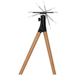 Kombinace kovu a ořechového dřeva vytváří rovnováhu mezi chladnou přesností a domácnostem na teplo. Dřevěná maska harmonicky zapadá do stávajících koncepcí zařízení a dodává organický vzhled do moderních interiérů. Ve světlých místnostech působí stojan jako klidný a v tmavých prostředích. Díky své hloubce materiálu podtrhuje charakter prostředí. Stane se tak předmětem, který nejen promítne do projekce, ale i součástí atmosféru místnosti.